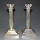 A pair of late Victorian silver Corinthian column candlesticks with detachable nozzles on stepped square bases, London 1894 by William Hutton & Sons, height approx 17.5cm.