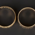 A 9ct gold wedding ring with floral and foliate decoration, Chester 1901, a 9ct gold plain wedding ring, Birmingham 1911, and two further 9ct gold wedding rings.