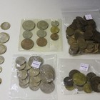 A collection of mostly British coins, comprising a nine coin plastic set 1953, British pre-decimal issues, including half-crown 1945, florin 1937, shilling 1937, sixpence 1944 and threepence 1945, a George III shilling 1787, pierced with a hole, four half-crowns 1962, pennies, halfpennies, farthings, nineteen decimal issue large five pence coins and sundry.