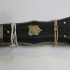 An early 19th Century hunting knife by C. Congreve, Sheffield, with heavy part double edged blade, length approx 25.5cm (rusted, tip broken), faintly struck 'Celebrated American Hunting Knife' within rectangular border, maker's name and 'WR' at forte, nickel hilt with part chequered ebony grips (cracked, straps broken).