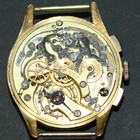 A Universal Geneve Tri-Compax Chronograph calendar gold circular cased gentleman's wristwatch, the signed circular silvered dial with four subsidiary dials, two calendar apertures and moonphase aperture, with centre stop seconds, the jewelled lever movement detailed 'Universal Geneve Swiss 287', detailed within the case back '18k0.750', case diameter approx 3.5cm.