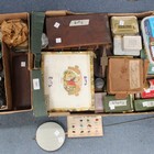 A large collection of watchmakers' tools, including a small lathe, boxed, together with assorted clock and watch parts, including mantel clock pendulums and a longcase pendulum.
