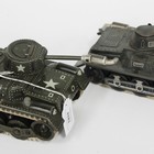 A Gama tinplate clockwork tank with revolving turret and rubber tracks, length approx 18.5cm, and a Gesha tinplate clockwork tank with revolving turret and rubber tracks, length approx 19.5cm.