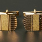 A pair of gold cufflinks with curved panel shaped fronts and sprung bar fittings to the backs, detailed '750'.