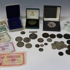 A group of eleven one pound notes D. Somerset Chief Cashier, five further mostly European banknotes, a silver Royal Wedding Eyewitness medal, with the original certificate and case, a New Zealand half-crown 1933, thirty-one further British and foreign coins and a 1914-18 British War Medal to 'DM2-096655. Cpl. C. Aston. A.S.C.'.
