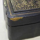 A Chinese Canton export ivory folding fan, mid-19th Century, the guards carved in low relief with butterflies, fish and flowers, the sixteen sticks with pierced decoration supporting a paper panel, finely painted in gouache with figural panels reserved against a floral ground, each figure with applied ivory facial detail, length approx 26.7cm, within original fitted lacquer rectangular box, painted with gilt figural panel and scrolling foliage.