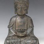 A South East Asian bronze figure of Amitabha Buddha, probably 19th Century, modelled seated in dhyanasana, wearing a long robe and holding hands in dhyana mudra, height approx 23cm.