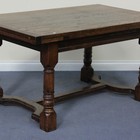A 20th Century Jacobean Revival oak drawleaf refectory table, the rectangular top raised on turned and block legs united by a shaped stretcher, height approx 77cm, extended length approx 207cm.