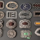 A group of six 19th Century cut steel waist buckles of various designs, together with a collection of ten other cut steel buckles.