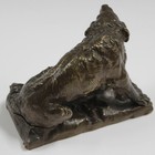 A 19th Century French brown patinated cast bronze model of a retriever, seated upon a naturalistic rectangular base, height approx 13cm, length approx 19cm.