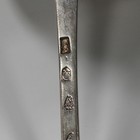 A George II Irish silver pointed Old English pattern soup ladle with later scalloped bowl and bright cut engraved handle, Dublin 1736, length approx 38cm.