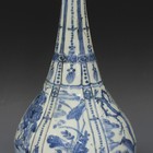 A Chinese blue and white Kraak porcelain bottle vase, Wanli period, painted with panels of birds, crickets and flowers, height approx 30.5cm (hairline crack to body).