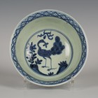 A Chinese provincial blue and white porcelain bowl, mark of Jiajing and possibly of the period, of steep sided circular form with flared rim, the interior and exterior painted with peacocks and blossoming branches, underglaze blue four character mark to base, diameter approx 17.3cm.