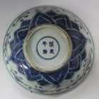 A Chinese blue and white porcelain bowl, mark of Hongwu but later, of steep sided circular form with flared rim painted with flowers, underglaze blue four character mark to base, diameter approx 19.5cm.