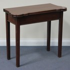 An 18th Century and later mahogany and oak fold-over card table, the shaped top with projecting corners above an oak base, on block legs, height approx 73cm, width approx 84cm, depth approx 40cm (alterations).
