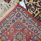 A Esfahan carpet, Central Persia, early/mid-20th Century, the ivory field with a foliate medallion surrounded by a border of boteh and supported by overall scrolling arabesques issuing palmettes and curled leaves, within a terracotta palmette and curled leaf border, approx 330cm x 204cm.