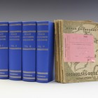 AMUNDSEN, Roald. Roald Amundsens Opdagelsesreiser… minneutgave [memorial edition]. Oslo: Gyldendal Norsk Forlag, 1928-1930. 4 vols., 8vo (205 x 132mm.) Colour frontispieces, 4 folding maps (1 bound at rear of each volume), numerous uncoloured illustrations. (Light browning, occasional minor soiling or damp staining.) Later cloth, spines gilt (pictorial wrappers bound at front and rear of vols. 1 & 4 respectively). Spence 26. Together with thirty-three issue wrappers for 'Roald Amundsens Opdagelsesreiser'. - And thirteen other volumes relating to Roald Amundsen. Provenance: The Michael Gilkes Collection (a quantity).