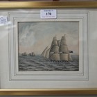 19th Century British School, possibly F. Cocks, Ship's Surgeon - 'H.M.S. Echo chasing two French Privateers off Dieppe', watercolour, label verso, approx 11.5cm x 14.5cm, within a gilt frame.
