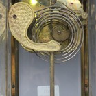 A late 19th Century American brass cased four glass mantel clock with eight day movement striking on a gong, the two-piece enamel dial with Roman numerals, the backplate detailed 'Ansonia New York', the case with iron surmount above scroll mounts and scroll feet, height approx 38cm, with pendulum and two winding keys.