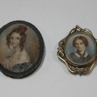 A small group of miniatures, including a pair within boulle work frames and a silhouette within a black papier-mâché frame.