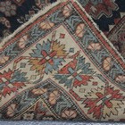 A Shirvan prayer rug, South-east Caucasus, late 19th/early 20th Century, the ink blue mihrab with a compartmentalized column of three lozenge medallions, within an ivory linked gul border, approx 139cm x 130cm.
