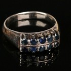 A 9ct gold and colourless gem eternity ring, a gold, half-pearl and green gem ring and a sapphire ring in a two row design.