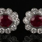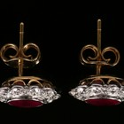 A pair of gold, ruby and diamond oval cluster earstuds, each collet set with an oval cut ruby within a surround of ten circular cut diamonds, length approx 1.2cm, the backs with post and butterfly fittings, cased.