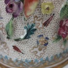 A Meissen porcelain desk bell, late 19th Century, outside painted with opposing oval vignettes filled with swans and cygnets and two chickens, framed by gilt decoration, against a yellow ground, cancelled crossed swords in underglaze blue to inside, height approx 10cm, together with another similar desk bell with floral encrusted decoration, height approx 11cm.