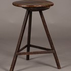 A small 19th Century provincial oak cricket table, retaining some original painted surface, the circular top on three block legs, height approx 60.5cm, diameter approx 37cm.
