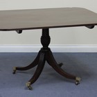 A George III and later mahogany tip-top breakfast table, the rectangular top above a turned and baluster column, on four outswept legs, height approx 76cm, length approx 135cm (alterations).