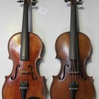 A violin, bearing interior label marked 'John Juzsk, Violinmaker formerly in Prague', length of back excluding button approx 33.7cm, together with another violin with two-piece back, length of back excluding button approx 33.8cm.