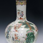 A large late 20th Century Chinese porcelain table lamp of bulbous bottle form, decorated with figures in landscapes, height approx 65cm, together with three other porcelain table lamps.