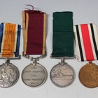An Army Long Service and Good Conduct Medal, George V issue, to 'S-5018 T.W.O. Cl.1. T.A. Harding. R.A.O.C.', a 1914-18 British War Medal to '2739A B.J. Ridge. 2.Hd. R.N.R.', a Royal Naval Reserve Long Service Medal George V issue to '40120. B.J. Ridge. P.O. R.N.R.' and a Medal for Faithful Service in The Special Constabulary, George V crowned head issue, to Sidney Aldridge.