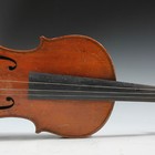 A violin with two-piece back, length of back excluding button 36cm, cased, with a bow.