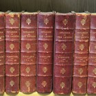 KINGLAKE, A.W. The Invasion of the Crimea [Cabinet Edition]. Edinburgh & London: William Blackwood and Sons, 1885-1888. Vols. I-VII sixth edition; vols. VIII-IX new edition, 9 vols., 8vo (176 x 120mm.) Numerous maps and plans. (Light browning, occasional spotting, some leaves uncut.) Contemporary half-morocco, spine gilt in six compartments, lettered in the second and fourth, the others with repeat decoration in gilt, t.e.g. (4 vols. rebacked with old spines laid-down, some hinges reinforced, extremities scuffed and lightly bumped). Provenance: Arthur Brooke (armorial bookplate to front pastedowns).