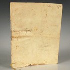 UBALDUS, Guido. An illuminated manuscript document addressed to Guido Ubaldus apparently granting him a doctorate by the university, city and state, including Locatelli. [N.p. but Urbino, Italy: n.d. but circa 1585.] 12pp. including 5 blank, folio (209 x 163mm.) Manuscript in black, red and gilt within red-ruled borders, decorative first initial. (Light browning or soiling, rubbing to final leaf of text, old creases.) Contemporary limp vellum with remnants of wax seal (soiled, upper cover torn with minor loss).