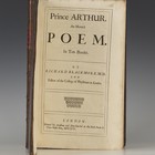 BLACKMORE, Richard. Prince Arthur, an Heroick Poem. London: Awnsham and John Churchil, 1695. Folio (310 x 190mm.) (Lacking all leaves prior to title, light browning, occasional minor soiling or ink marginalia.) Contemporary mottled panelled-calf (rebacked, extremities bumped, joints splitting, endpapers replaced). Provenance: C.J. (inscribed 'If this poem had been executed as well as it is conceived, it might have been a tolerable performance. But the author has disgraced his own thoughts by his bombast language..' to final leaf of text).