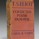 LITERATURE. - T.S. ELIOT. Collected Poems 1909-1935. London: Faber & Faber Limited, 1937. Second impression, 8vo (219 x 136mm.) (Light browning.) Original cloth (extremities lightly bumped and scuffed), dust-jacket (chipped, torn and repaired with some loss, backstrip browned). Provenance: Sir Colin St John Wilson (initialled to front-free endpaper). - And a quantity of other volumes (a quantity).