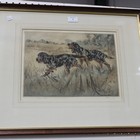 Henry Wilkinson - Two Gordon Setters in a Landscape, coloured etching, signed and editioned 92/160 in pencil, approx 27cm x 36.5cm.