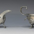 A pair of late Victorian silver sauce boats, each with shaped rim flanked by a scroll handle, on scallop shouldered scroll legs with pad feet, Chester 1900 by George Nathan & Ridley Hayes, length approx 16cm.