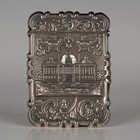 A mid-19th Century American silver castle-top card case of shaped rectangular form with hinged cover, the front decorated in relief with a view of the Capitol Building, Washington D.C, within a frame of flowers, scallop shells and scrolls, inner rim marked 'H', otherwise unmarked, but probably by Leonard & Wilson of Philadelphia, length approx 9cm.
