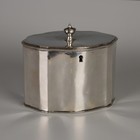 A George III silver tea caddy of serpentine outlined oval form, the hinged lid with urn shaped finial above beaded rims, London 1780 by Charles Aldridge & Henry Green, height approx 8.5cm.