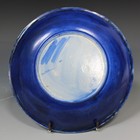 A William Moorcroft circular dish, circa 1918-1929, decorated with Fern design against a blue ground, impressed factory marks and painted signature to base, diameter approx 18.5cm.