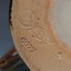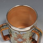 A Royal Doulton stoneware tyg, early 20th Century, the cylindrical body with a Mappin & Webb plated collar, decorated with green and blue foliate motifs against a mottled brown ground, impressed factory marks to base, height approx 15.5cm, and a Royal Doulton candlestick of baluster form, decorated in relief with flowers and foliage, impressed factory marks to base, height approx 30cm.