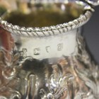 A George III silver cream jug of ogee baluster form with gadrooned rim and foliate capped scroll handle, the body decorated in relief with flowers and scrolls, on a circular gadrooned foot, London 1765 by D & R Hennell, height approx 11.5cm.