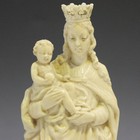 A late 19th Century Continental carved ivory figure group of the Madonna and Child, the Madonna modelled wearing a crown, standing on a canted rectangular plinth, height approx 17.5cm.