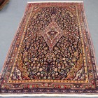 A North-west Persian rug, mid/late 20th Century, the midnight blue field with a lozenge medallion supported by flowering branches and boteh, within a pink flowering vine border, approx 220cm, x 135cm.