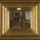 Thomas Barrett - 'Clovelly, a Sketch', 19th Century oil on canvas, signed and titled verso, approx 17cm x 22cm, within a gilt composition frame.