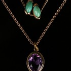 An amethyst single stone pendant with a gold oval link neckchain on a boltring clasp, and a turquoise two stone pendant with a gold neckchain, detailed '14k', on a boltring clasp.