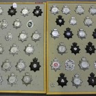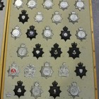 A group of twenty-seven mainly post-1952 police helmet plates, including Essex (two types), Leicester and Rutland, Liverpool and Bootle, Kent, Lincolnshire and Hull City, including three post-1902, mounted on a grey felt covered board, framed, together with another group of twenty-seven post-1952 police helmet plates, including Somerset and Bath, Sussex, West Yorkshire, York City and Southport Borough, mounted on a grey felt covered board, framed.